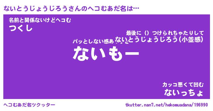 | 伝説のあだ名 | 『封印されしスナイパーないとうじょうじろう』 |