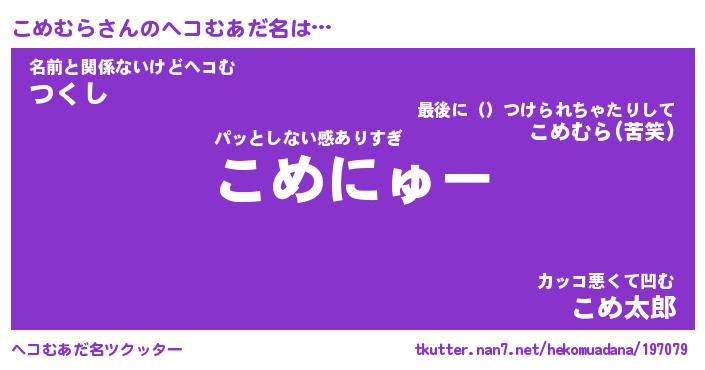 | 意味不明あだ名 | 『ペロリンこめむら』『永久保存こめむら』 |