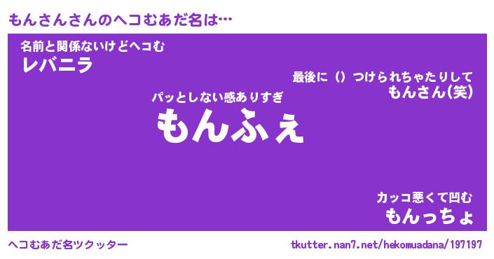 | ヒーロー風カッコイイあだ名 | 『スーパーモンサン』『炎刃騎士モン』 |