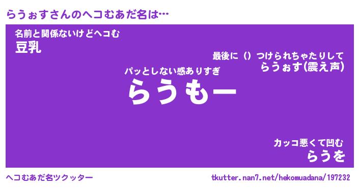 | 意味不明あだ名 | 『ペロリンらうぉす』『永久保存らうぉす』 |