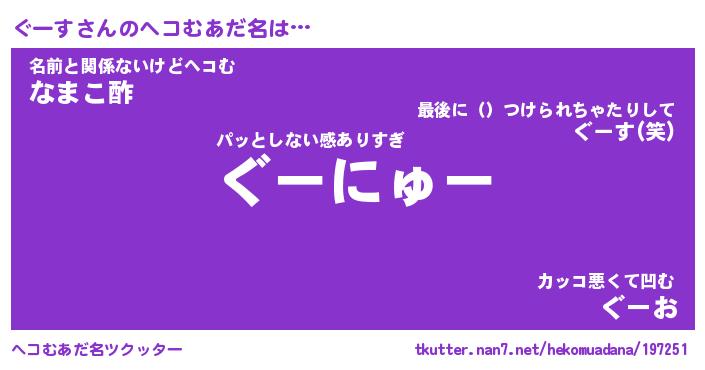 | 2回繰り返すあだ名 | 『ぐーぐー』『ぐぐーー』『ぐうぐう』 |