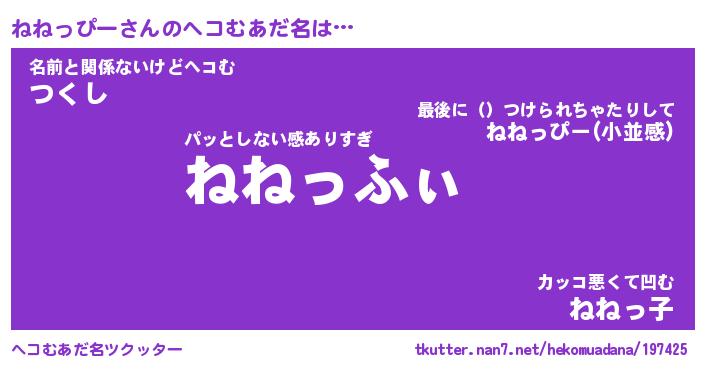 | ファンタジー風あだ名 | 『ネネフェル』『エターナルネネッピーー』 |