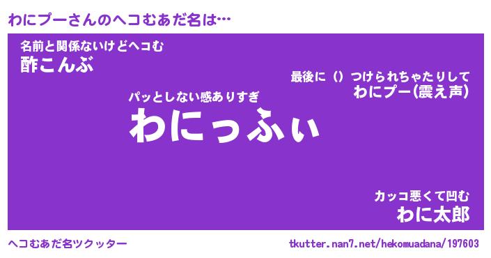 | 男性向けラノベタイトル風あだ名 | 『わにプーの憂鬱』 |