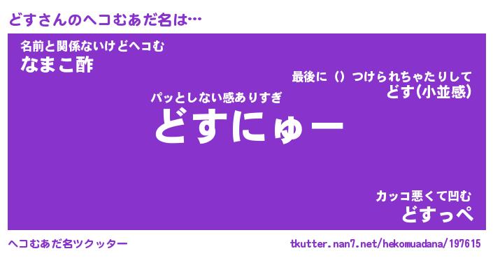 | 2回繰り返すあだ名 | 『どすどす』『どどすす』『うねうね』 |