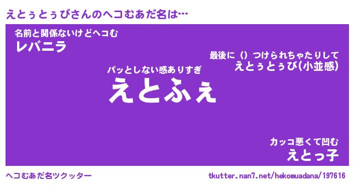 | ポケモン風あだ名 | 『エトチュウ』『エトゥダネ』 |