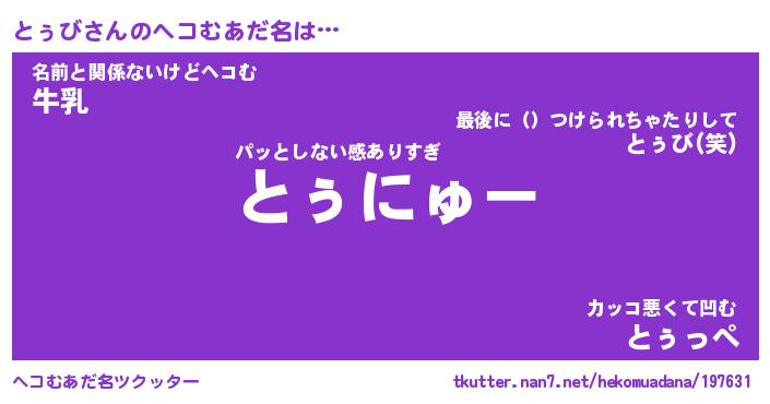 | 胡散臭い通販商品みたいなあだ名 | 『億万長者になれる水晶球…その名も「とぅび」』 |
