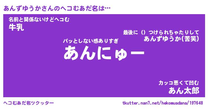 | ヒーロー風カッコイイあだ名 | 『スーパーアンズユウカ』『黄金騎士アン』 |