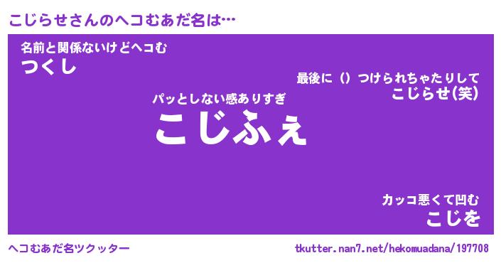 | ファンタジー風あだ名 | 『コジフェル』『エターナルコジラセー』 |