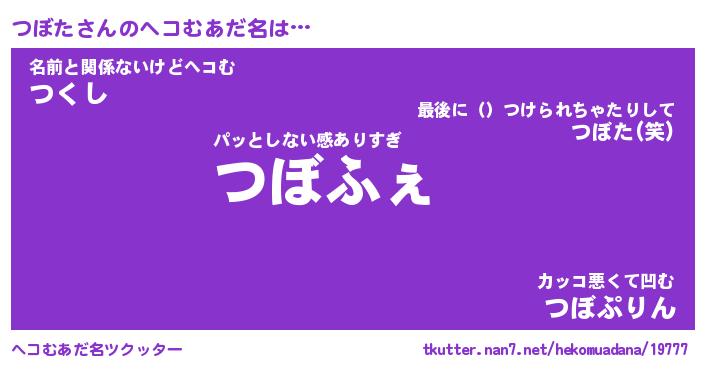 | ポケモン風あだ名 | 『ツボチュウ』『ツボタダネ』 |