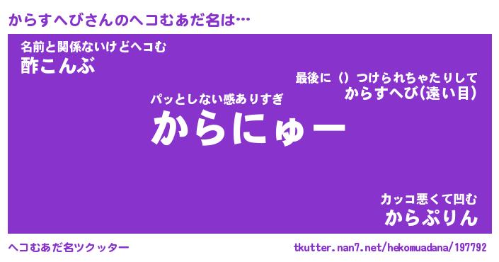 | ポケモン風あだ名 | 『カラチュウ』『カラスダネ』 |