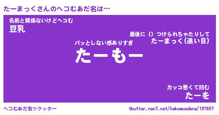| 恥ずかしいあだ名 | 『プリティーたーまっく』『たーっちょ』 |