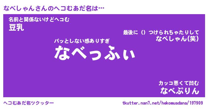 | ファンタジー風あだ名 | 『ナベフェル』『エターナルナベシャンー』 |