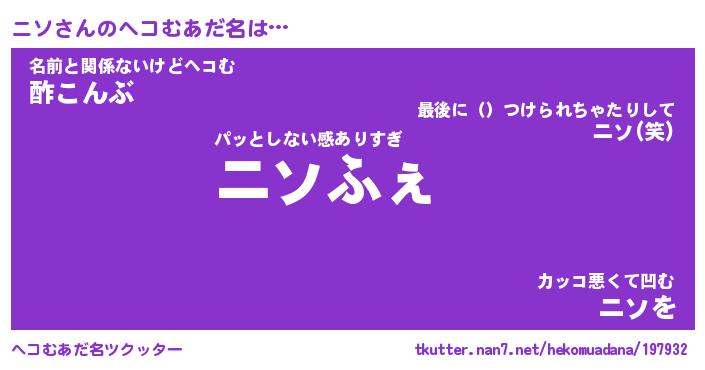 | ファンタジー風あだ名 | 『ニソフェル』『エターナルニソー』 |