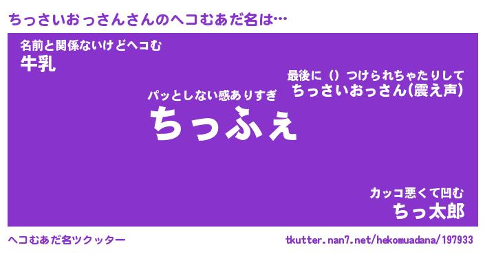| 2回繰り返すあだ名 | 『ちっちっ』『ちちっっ』『いじいじ』 |