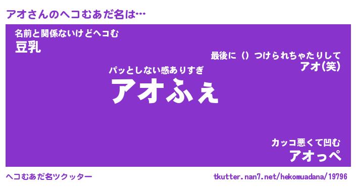 | ファンタジー風あだ名 | 『アオフェル』『エターナルアオー』 |