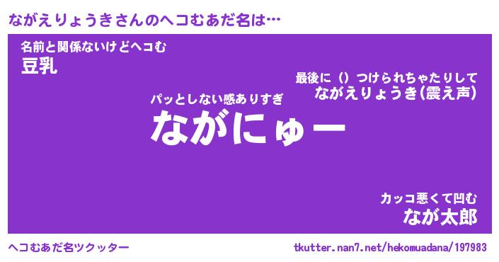 | ヒーロー風カッコイイあだ名 | 『スーパーナガエリョウキ』 |