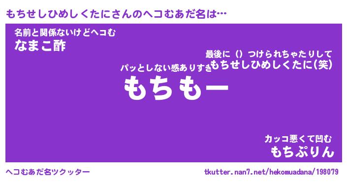 | 男性向けラノベタイトル風あだ名 | 『もちせしひめしくたにの憂鬱』 |