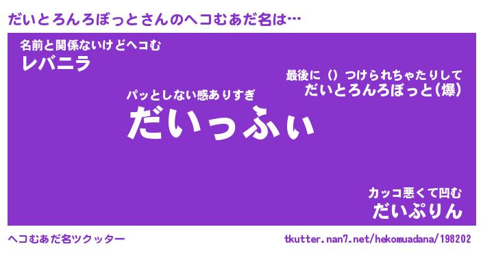 | 欧米人風あだ名 | 『マイケルだいとろんろぼっと』 |
