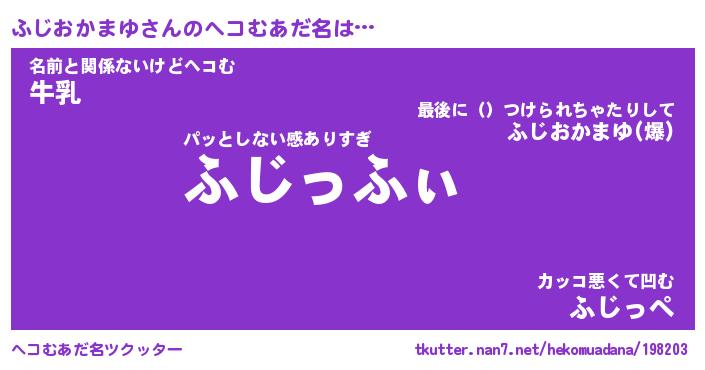 | 意味不明あだ名 | 『ペロリンふじおかまゆ』 |