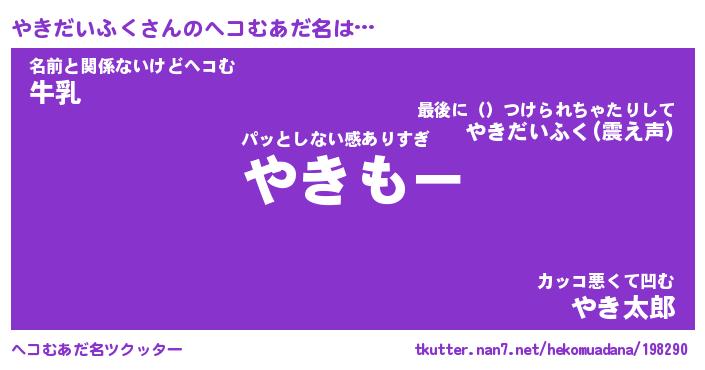 | 胡散臭い通販商品みたいなあだ名 | 『必ず成功する霊験あらたかなお札…その名も「やきだいふく」』 |