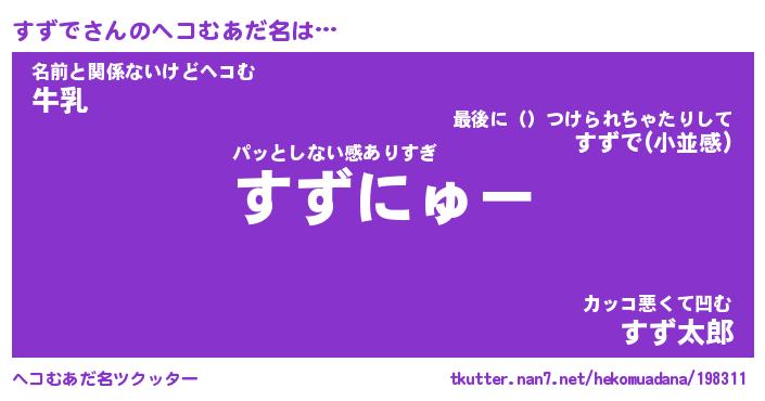 | 意味不明あだ名 | 『ペロリンすずで』『すずでフォーエバー』 |