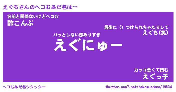 | 2回繰り返すあだ名 | 『えぐえぐ』『ええぐぐ』『ぬれぬれ』 |