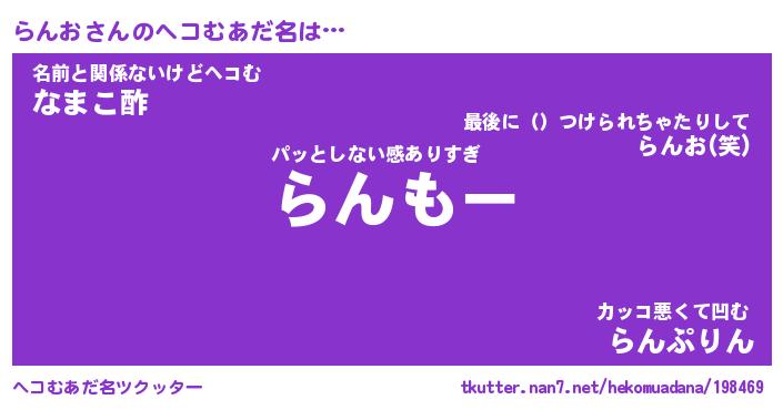 | 意味不明あだ名 | 『ペロリンらんお』『らんおフォーエバー』 |
