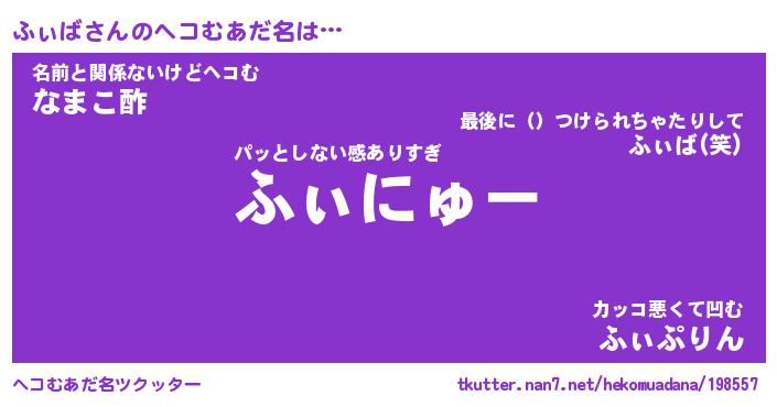 | 2回繰り返すあだ名 | 『ふぃふぃ』『ふふぃぃ』『ぬぷぬぷ』 |