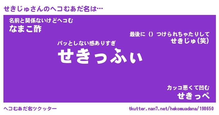 せきじゅさんのヘコむあだ名をツクッター!