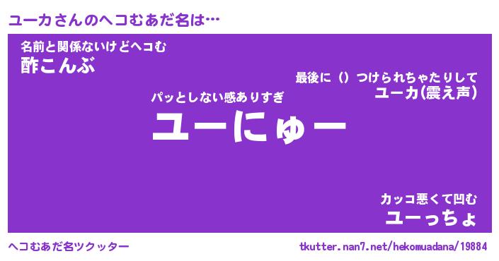 | ポケモン風あだ名 | 『ユーチュウ』『ユーカダネ』 |