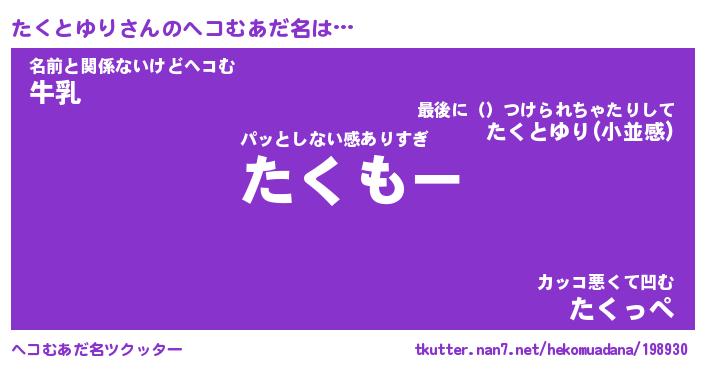 | 2回繰り返すあだ名 | 『たくたく』『たたくく』『ぬれぬれ』 |