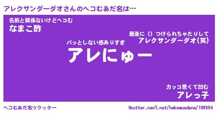 | ヒーロー風カッコイイあだ名 | 『スーパーアレクサンダーダオ』 |