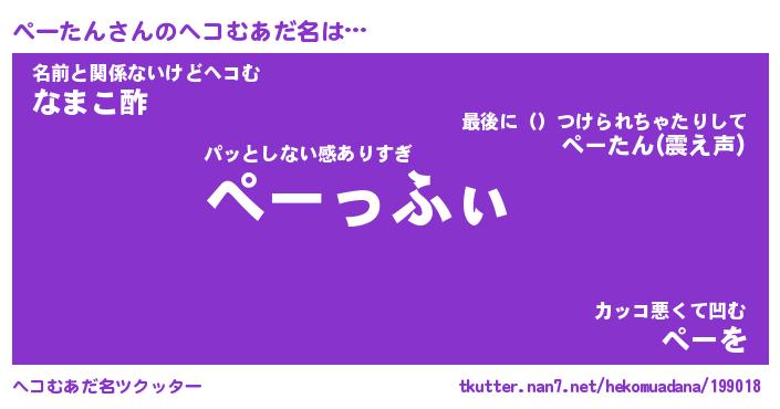 | 2回繰り返すあだ名 | 『ぺーぺー』『ぺぺーー』『ぬらぬら』 |