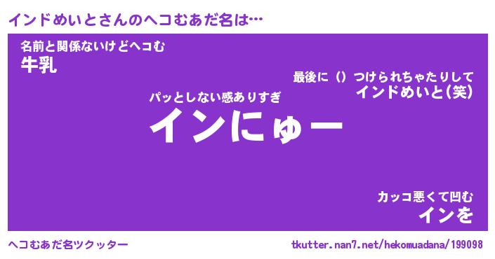 | 恥ずかしいあだ名 | 『プリティーインドめいと』『インっちょ』 |