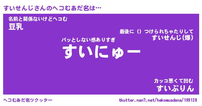 | ピコ太郎風あだ名 | 『スコ二郎』『ピス太郎』『スイ次郎』 |