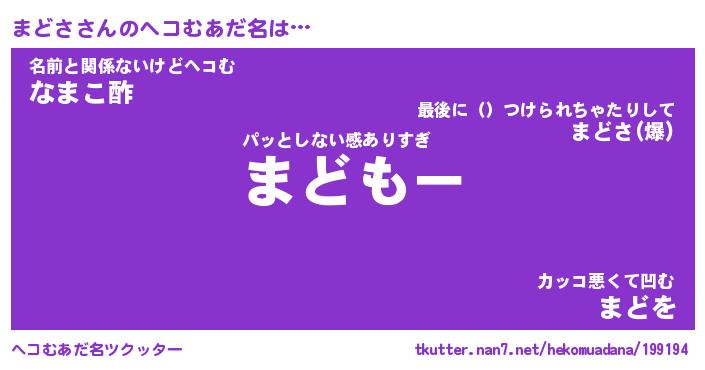 | ヒーロー風カッコイイあだ名 | 『スーパーマドサ』『ウルトラまどさマン』 |