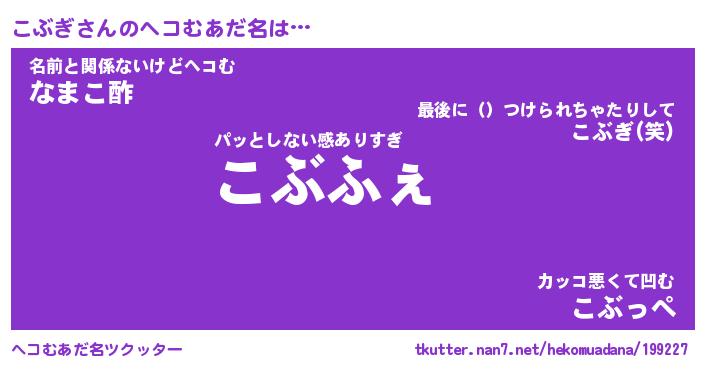 | 2回繰り返すあだ名 | 『こぶこぶ』『ここぶぶ』『ぬれぬれ』 |