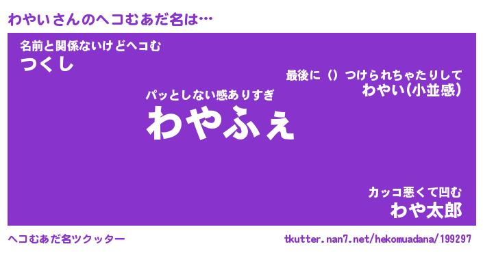 | ファンタジー風あだ名 | 『ワヤフェル』『エターナルワヤイー』 |