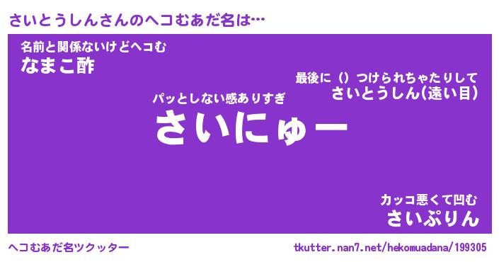 | 恥ずかしいあだ名 | 『プリティーさいとうしん』『さいっちょ』 |