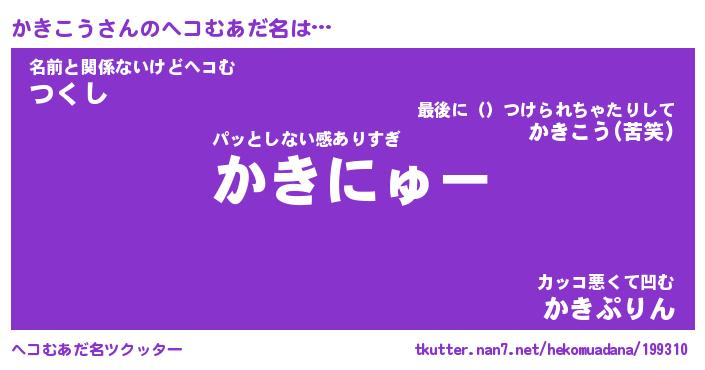 | ピコ太郎風あだ名 | 『カコ四郎』『ピカ一郎』『カキ十郎』 |