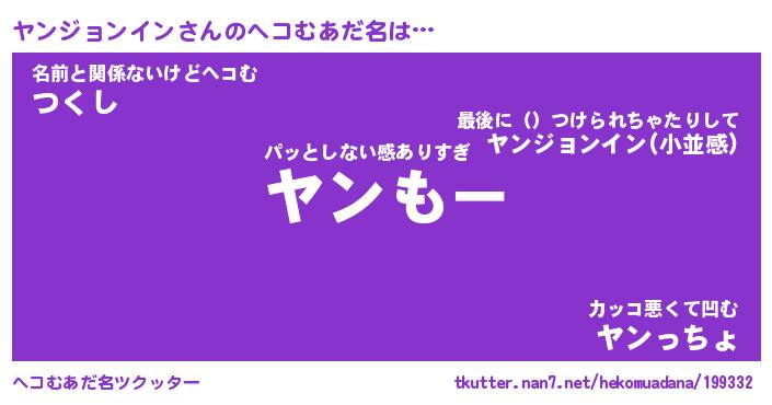 | 恥ずかしいあだ名 | 『プリティーヤンジョンイン』『ヤンちん』 |