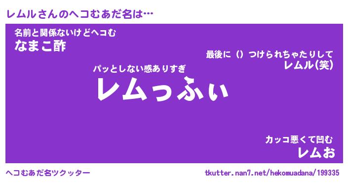 | 意味不明あだ名 | 『ペロリンレムル』『レムルフォーエバー』 |