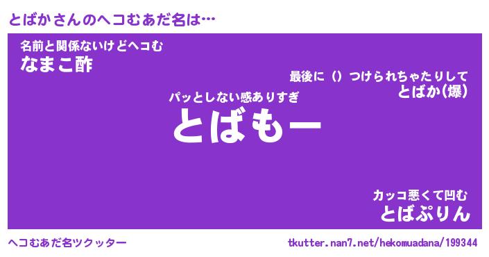 | 2回繰り返すあだ名 | 『とばとば』『ととばば』『ぬぷぬぷ』 |