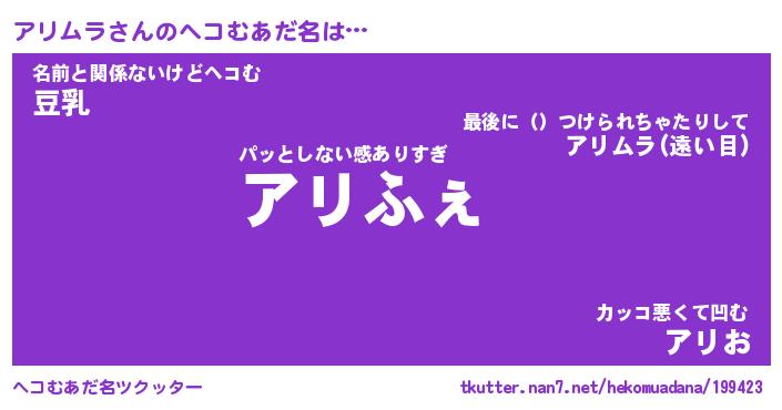 | ファンタジー風あだ名 | 『アリフェル』『エターナルアリムラー』 |