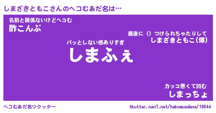 | 女子向けラノベタイトル風あだ名 | 『(仮)しまざきともこのやんごとなき事情』 |