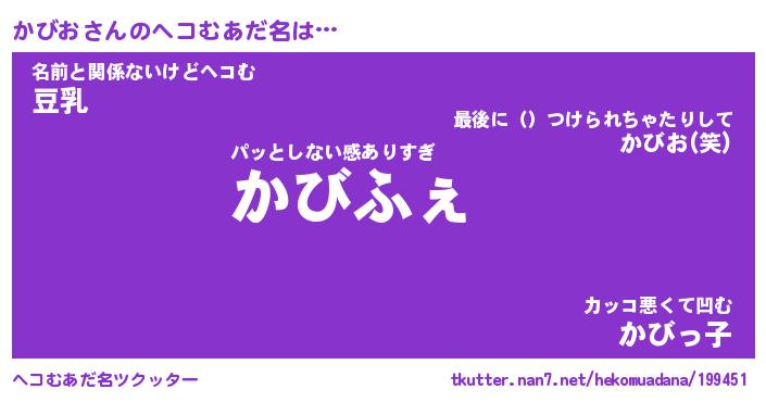 | 自動車の名前っぽいあだ名 | 『カビティマ』『カスラー』『デミカ』 |