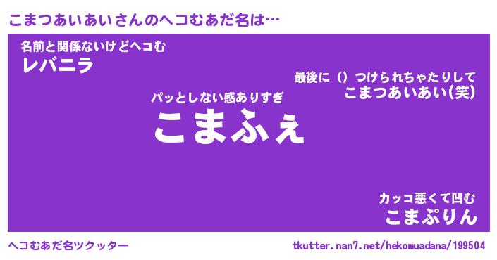 | ポケモン風あだ名 | 『コマチュウ』『コマツダネ』 |