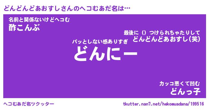 | 2回繰り返すあだ名 | 『どんどん』『どどんん』『ねとねと』 |