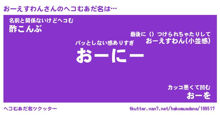| 2回繰り返すあだ名 | 『おーおー』『おおーー』『ぬるぬる』 |
