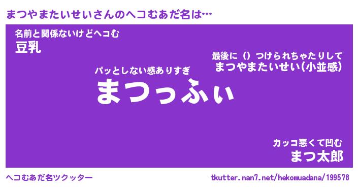 | 胡散臭い通販商品みたいなあだ名 | 『必ず成功する霊験あらたかなお札…その名も「まつやまたいせい」』 |